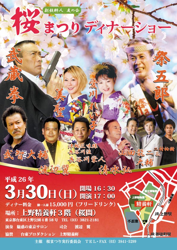 3月に上野精養軒で行われる「桜まつりディナーショー」に武蔵拳が出演します。